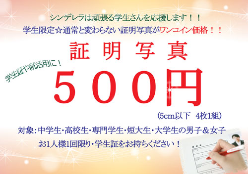WEB限定!学生応援証明写真キャンペーン☆